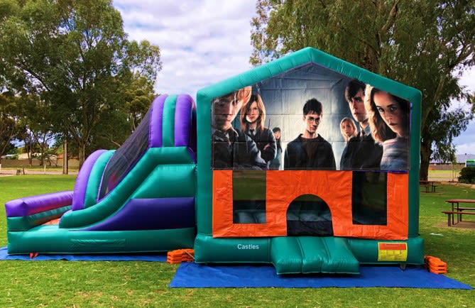 The Harry Potter Large Bouncy Castle comes with a slide, a basketball hoop, a jumping area & steps to climb to the top of the slide. This inflatable/bouncy castle is ideal for kids in general up to the age of 18 years old.