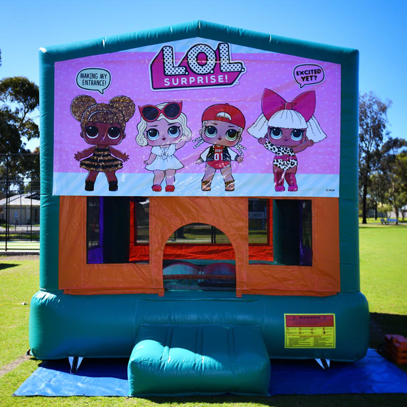 The L.O.L Small Bouncy Castle is a combo with basketball hoop and jumping area.This inflatable/bouncy castle is ideal for kids in general up to the age of 12 years old.