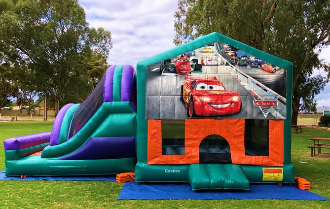 The Cars Large Bouncy Castle comes with a slide, a basketball hoop, a jumping area & steps to climb to the top of the slide. This inflatable/bouncy castle is ideal for kids in general up to the age of 18 years old.