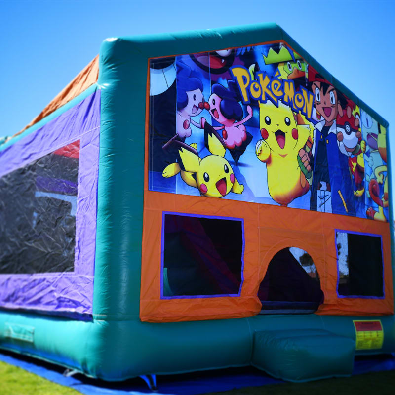 The Pokemon Medium Bouncy Castle comes with a slide, a basketball hoop, a jumping area & steps to climb to the top of the slide. This inflatable/bouncy castle is ideal for kids in general up to the age of 12 years old and Adults.