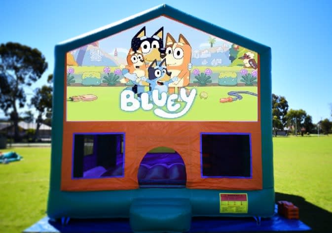 The Bluey Medium Bouncy Castle comes with a slide, a basketball hoop, a jumping area & steps to climb to the top of the slide. This inflatable/bouncy castle is ideal for kids in general up to the age of 12 years old.