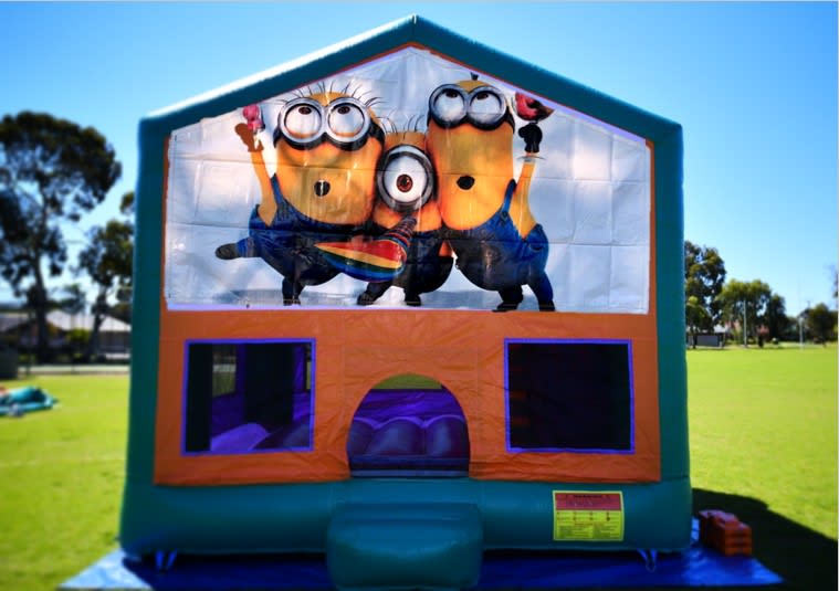 The Minions Medium Bouncy Castle comes with a slide, a basketball hoop, a jumping area & steps to climb to the top of the slide. This inflatable/bouncy castle is ideal for kids in general up to the age of 12 years old and Adults.