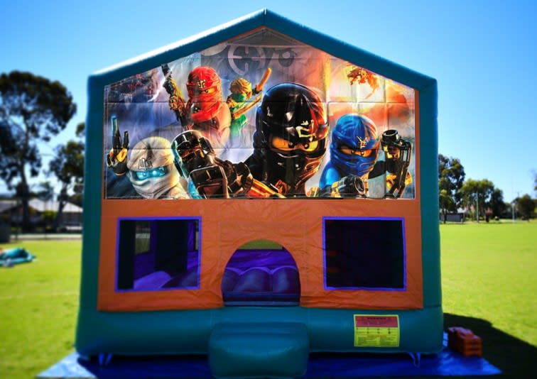 The Lego Ninjago Medium Bouncy Castle comes with a slide, a basketball hoop, a jumping area & steps to climb to the top of the slide. This inflatable/bouncy castle is ideal for kids in general up to the age of 12 years old and Adults.