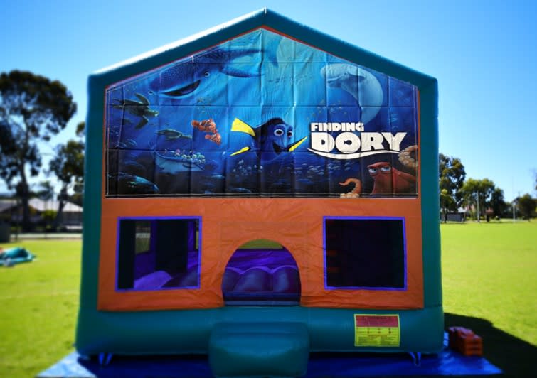 The Finding Dory Medium Bouncy Castle comes with a slide, a basketball hoop, a jumping area & steps to climb to the top of the slide. This inflatable/bouncy castle is ideal for kids in general up to the age of 12 years old and Adults.
