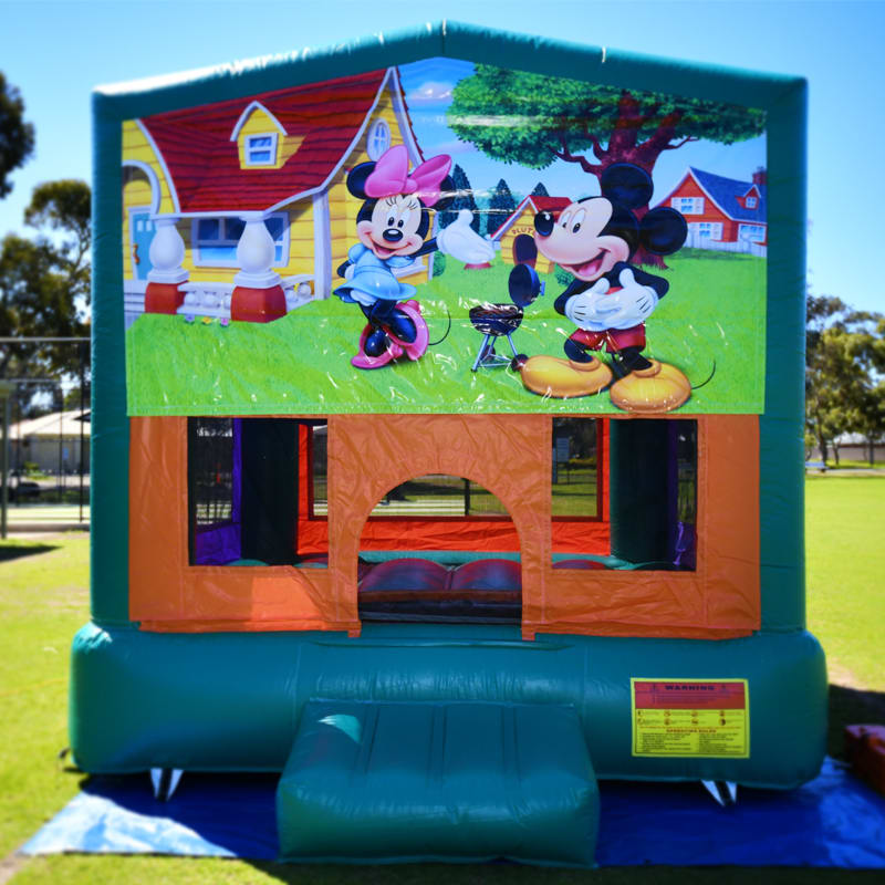 The Mickey And Minnie Mouse Small Bouncy Castle is a combo with basketball hoop and jumping area.This inflatable/bouncy castle is ideal for kids in general up to the age of 12 years old.