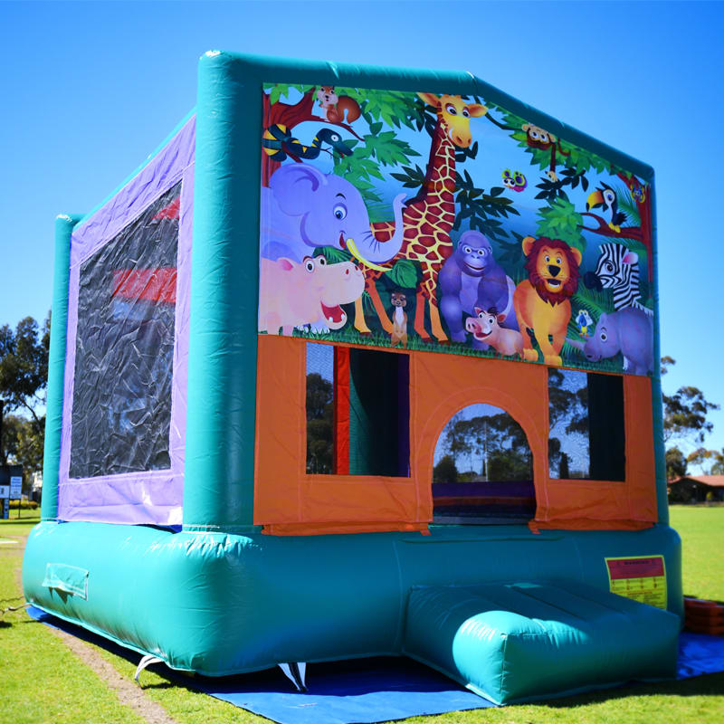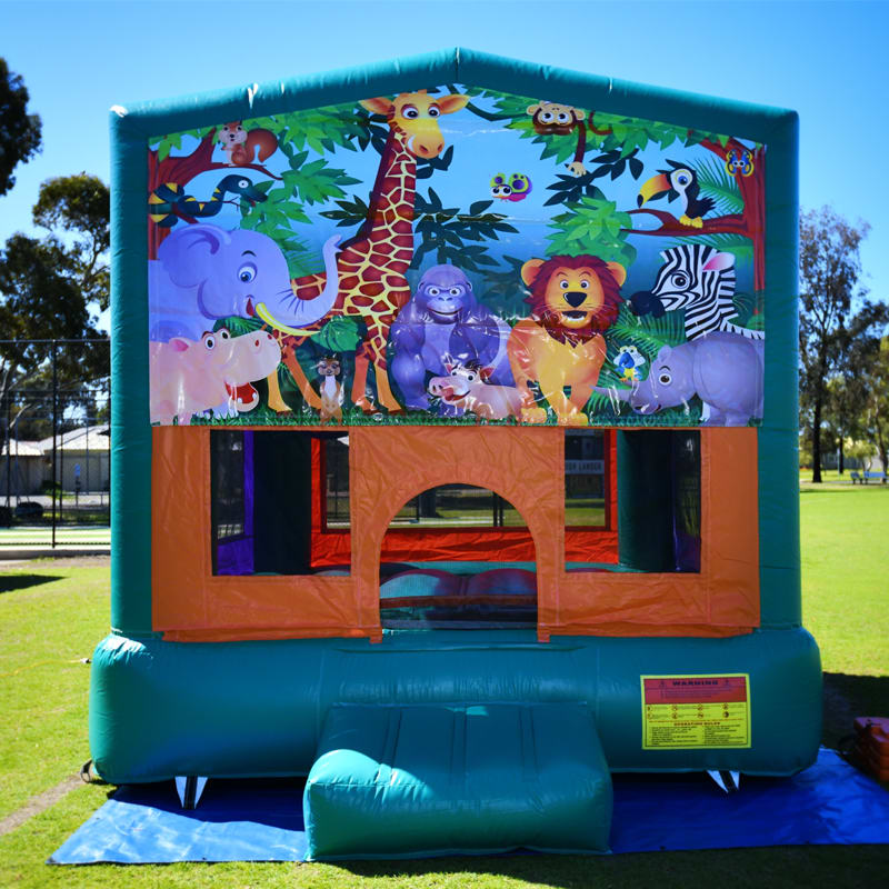 The Jungle Theme Small Bouncy Castle is a combo with basketball hoop and jumping area. This inflatable/bouncy castle is ideal for kids in general up to the age of 12 years old.