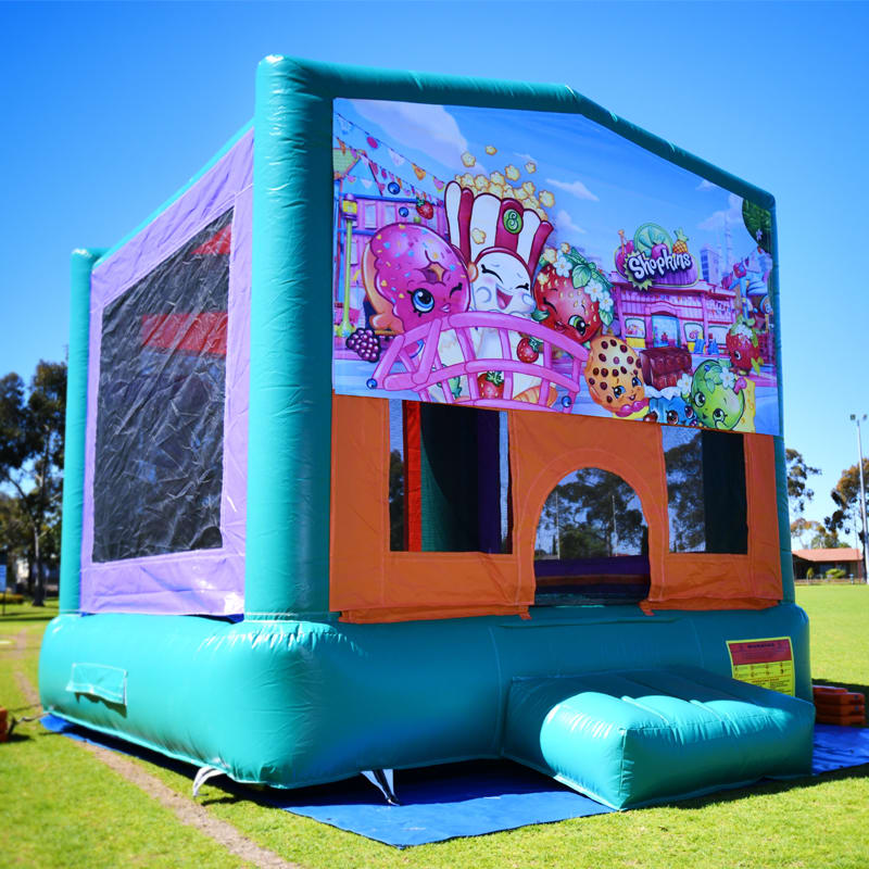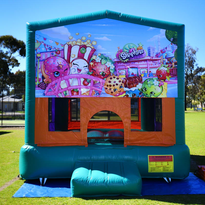 The Shopkins Small Bouncy Castle is a combo with basketball hoop and jumping area. This inflatable/bouncy castle is ideal for kids in general up to the age of 12 years old.