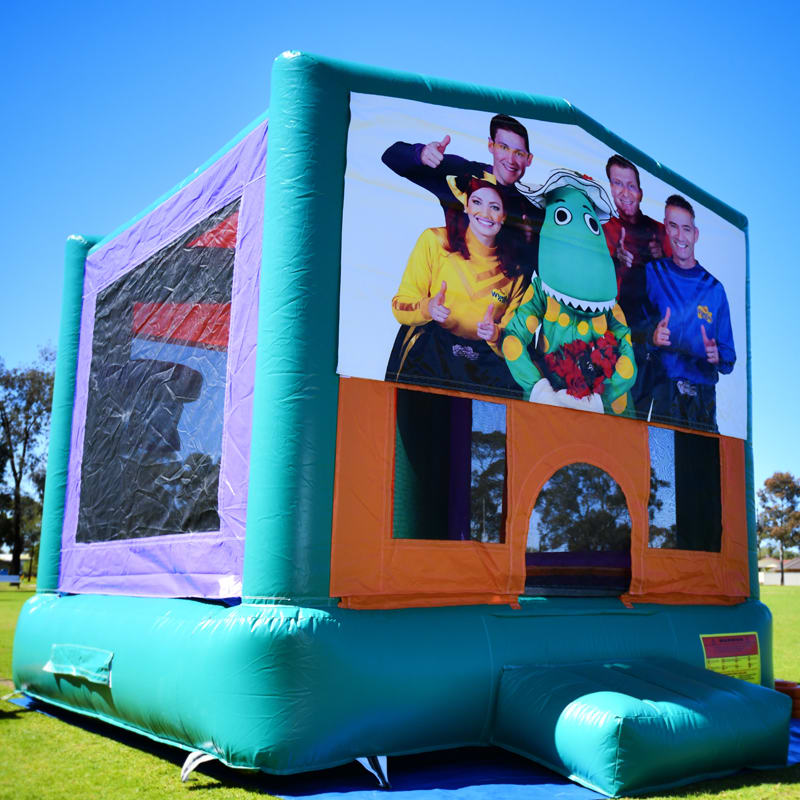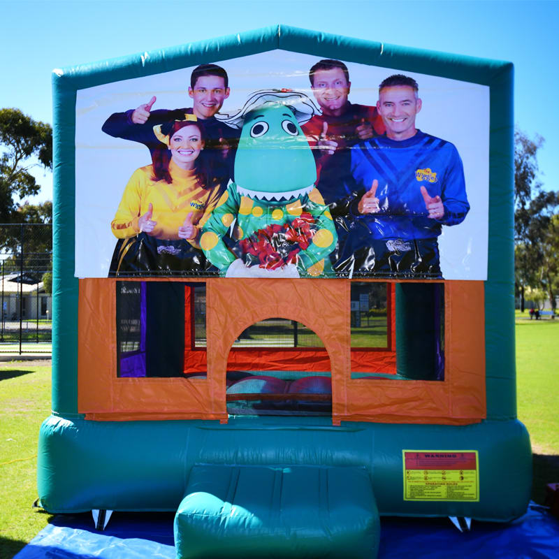 The Wiggles Small Bouncy Castle is a combo with basketball hoop and jumping area. This inflatable/bouncy castle is ideal for kids in general up to the age of 12 years old.